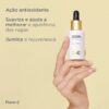 Beneficios: A alta concentração de vitamina C neutraliza os radicais livres, estimula a síntese de colágeno e proporciona uma proteção contra os efeitos da radiação. Melhora a luminosidade da pele e promove a recuperação da elasticidade, contribuindo para uma maior hidratação e um aspecto visivelmente rejuvenescido.